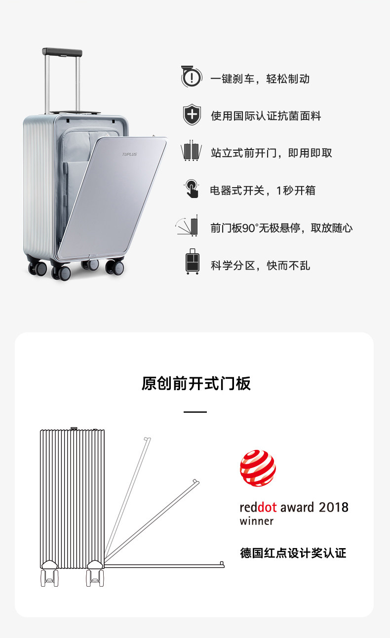 【德国红点奖】TUPLUS/途加即刻S行李箱万向轮侧开男女铝框登机箱